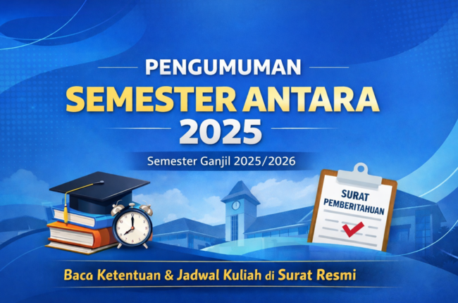 Dalam rangka memberikan kesempatan kepada mahasiswa untuk mengoptimalkan capaian akademik, institusi menyelenggarakan Semester Antara Tahun Akademik Ganjil 2025/2026 sebagaimana tercantum dalam Surat Pemberitahuan Semester Antara yang telah diterbitkan secara resmi. 📄 Surat Pemberitahuan Semester Antara…